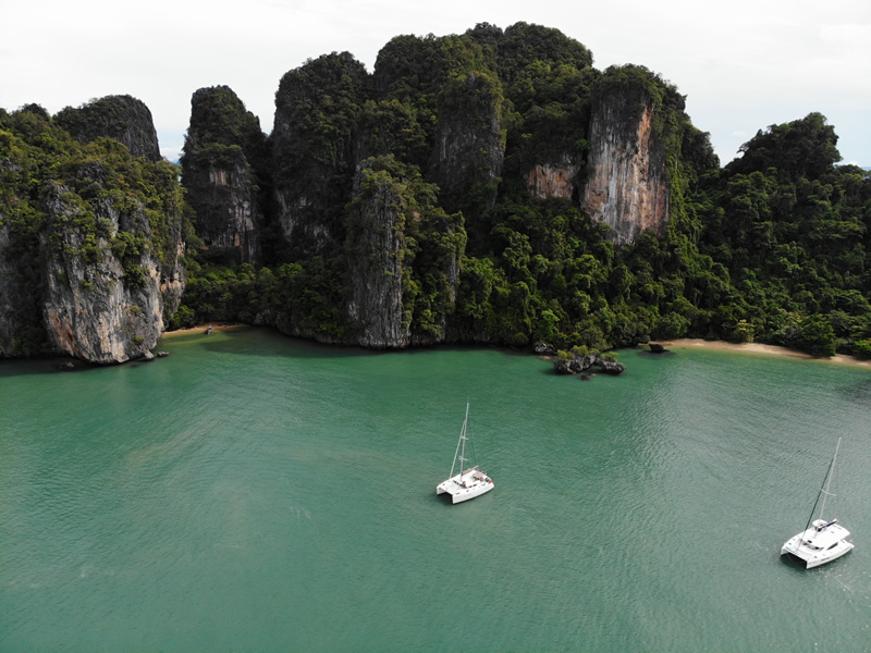 Por la mañana pondremos rumbo este y navegaremos entre muchas pequeñas islas, una de las paradas que haremos será en la isla de Hong, que destaca por su espectacular laguna en donde podremos desembarcar con la barca auxiliar o el kayak si la marea lo permite).