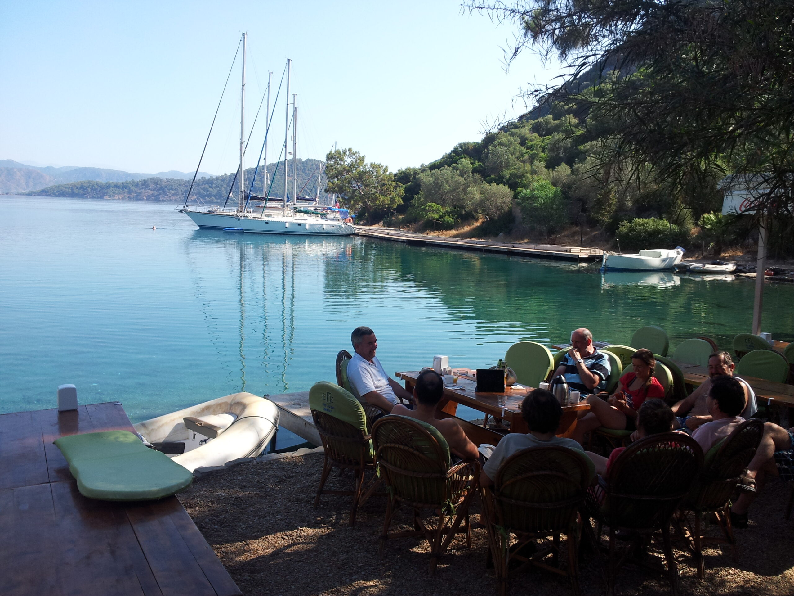 La idea es encontrarnos todos en el puerto de Göcek antes de que caiga el sol para ir a cenar a un restaurante y dar la bienvenida al grupo.