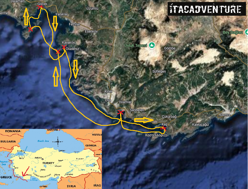 Itinerario del viaje en velero por Turquía: ruta sur